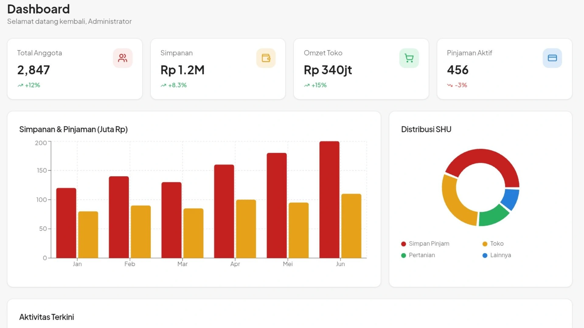 Kelola anggota, keuangan, simpan pinjam, hingga unit usaha koperasi desa dalam satu sistem digital yang rapi, transparan, dan mudah digunakan.