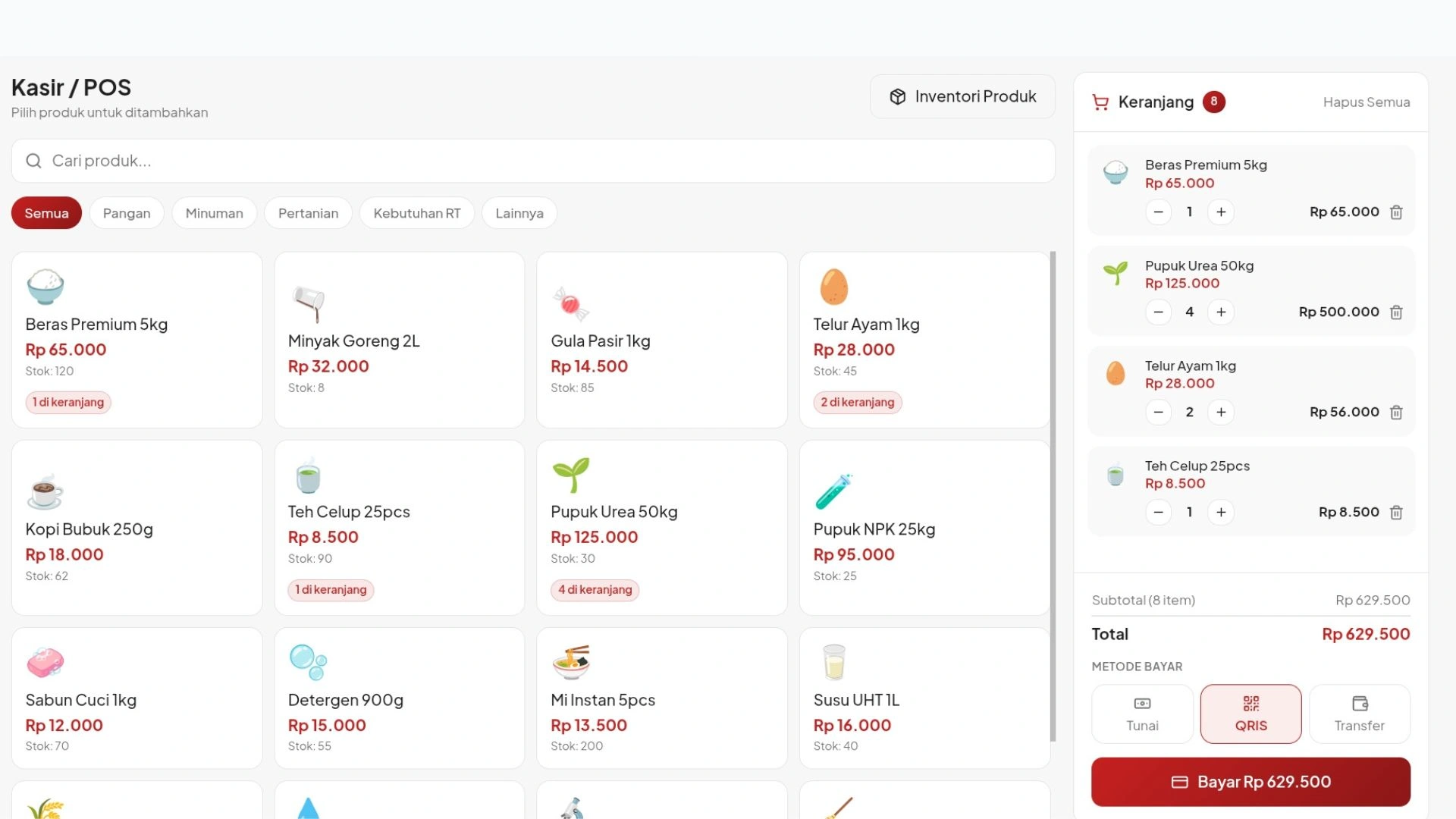Kelola unit usaha koperasi seperti toko dengan sistem kasir digital. Transaksi penjualan, stok barang, dan laporan penjualan terintegrasi dalam satu sistem yang mudah digunakan.
