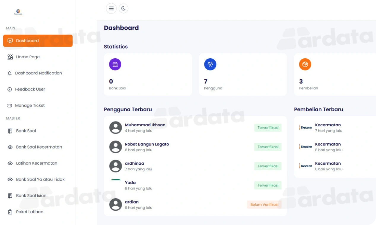 5. Admin Panel untuk Mengelola Pengguna, Data Soal, dll